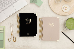 Next, we turned our focus to the product design. Erin had a earlier version of the Top 3 Notebook, but wanted to upgrade the inner planning pages and refresh the cover design to match the brand's new aesthetic.