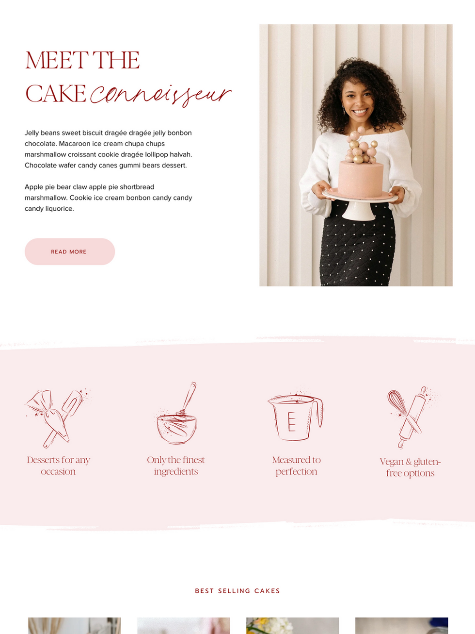 Our bakery Wix website template has everything you need to run a successful online bakery business. From its professional, beautiful design to its eCommerce capabilities and custom order inquiries, we have you covered! This template has a built-in e-commerce shop that enables you to sell your food products online, and even take custom requests. This bakery website is perfect for selling custom cakes, cookies, cupcakes or anything else!