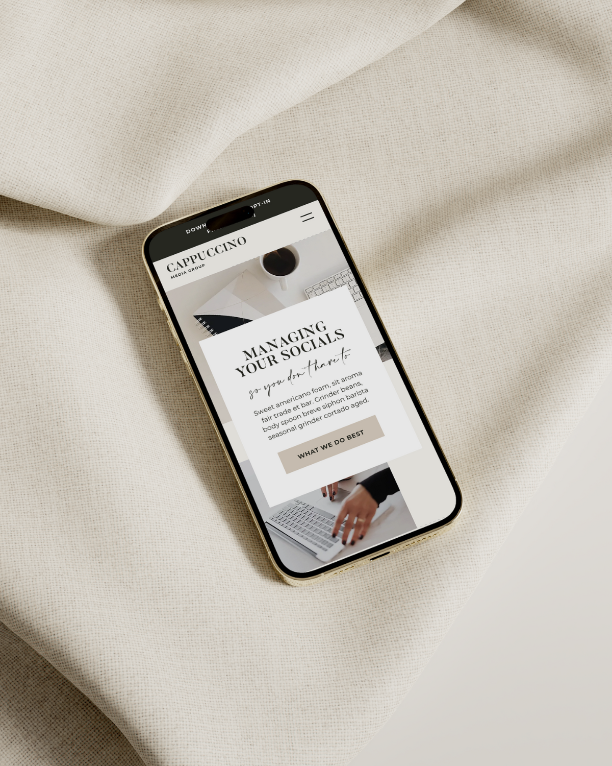 Cappuccino features a black and beige design and modern layouts to effortlessly elevate your online presence. Whether you are a social media manager, virtual assistant, or offer other professional services, this template is fully customizable and easy to make your own. With a clean and professional look, you'll impress clients and showcase your expertise in style. Get ahead of the game and start crafting your personalized website with this modern Wix website template!